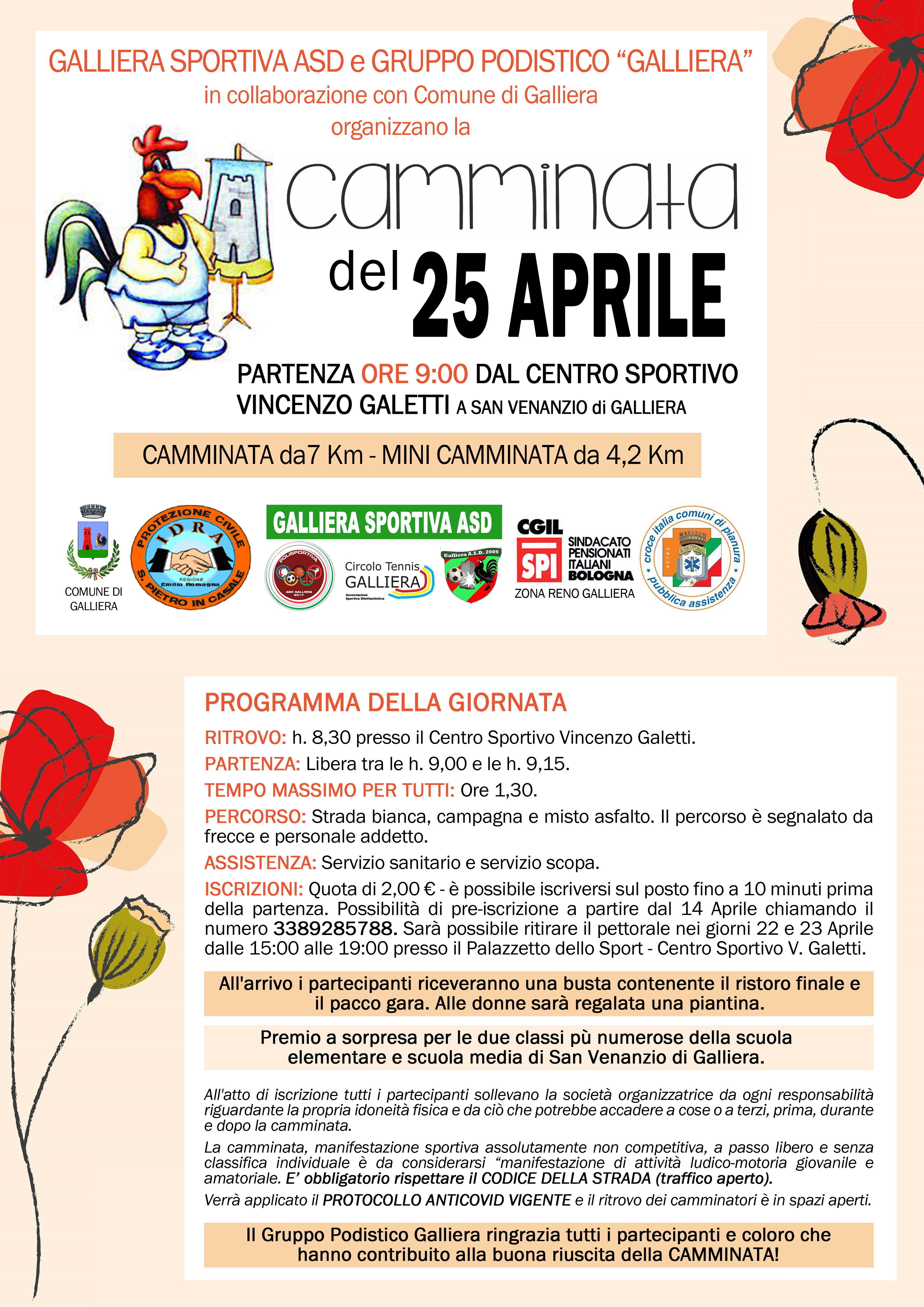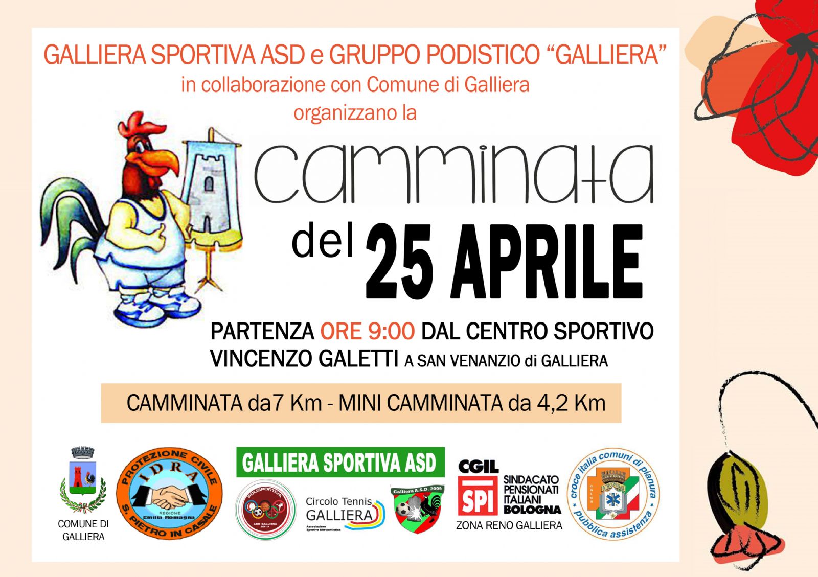 Galliera Sportiva ASD e GRUPPO PODISTICO “GALLIERA” in collaborazione con Comune di Galliera organizzano la CAMMINATA DEL 25 APRILE.
