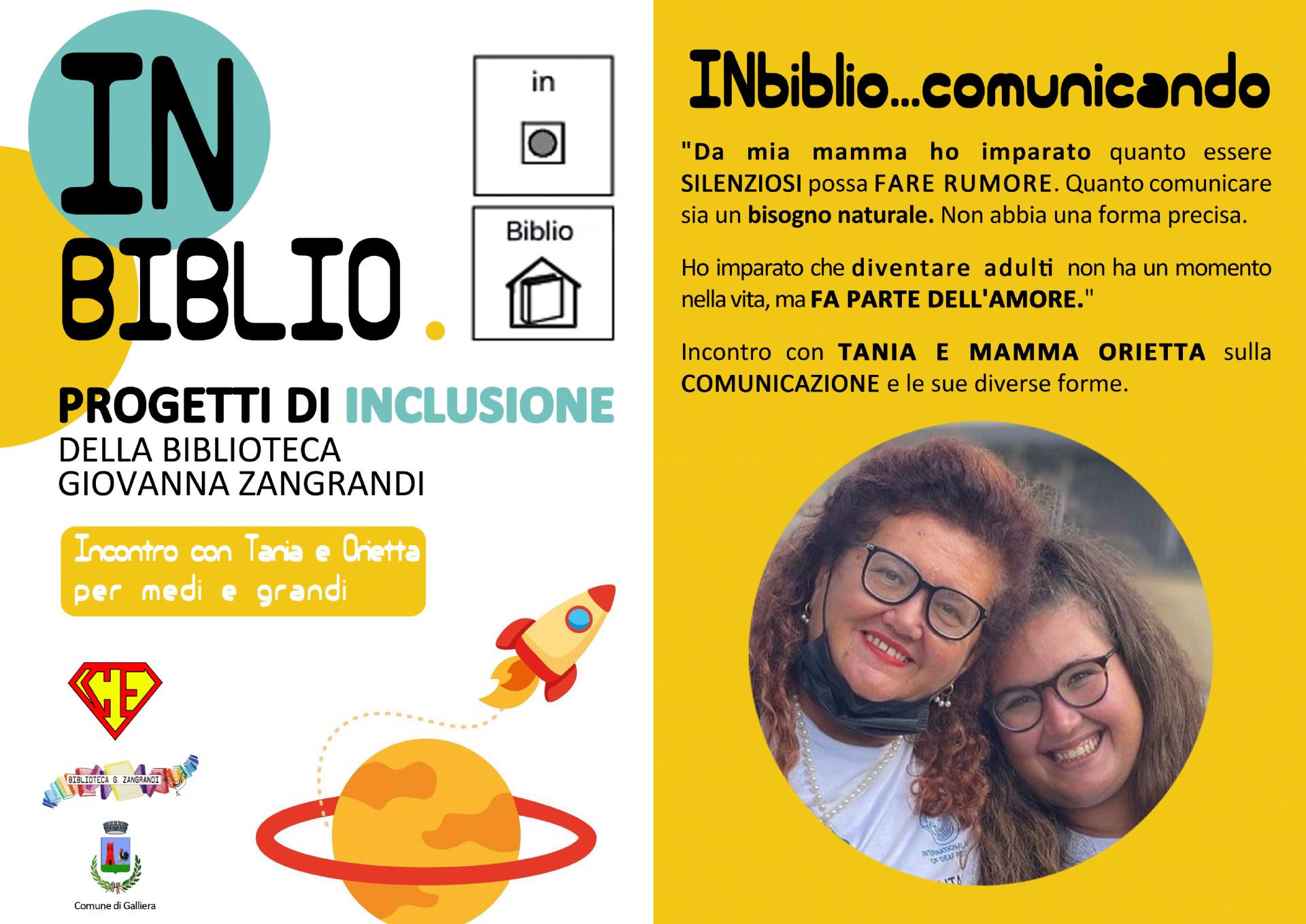 “In-Biblio” è un progetto organizzato dal Comune di Galliera in collaborazione con la Biblioteca G. Zangrandi e il Centro Estivo dove il filo conduttore è l’Inclusione, con attività volte a stimolare consapevolezza e sensibilità verso l’Altro, attraverso incontri, momenti di condivisione e laboratori sensoriali e manuali.