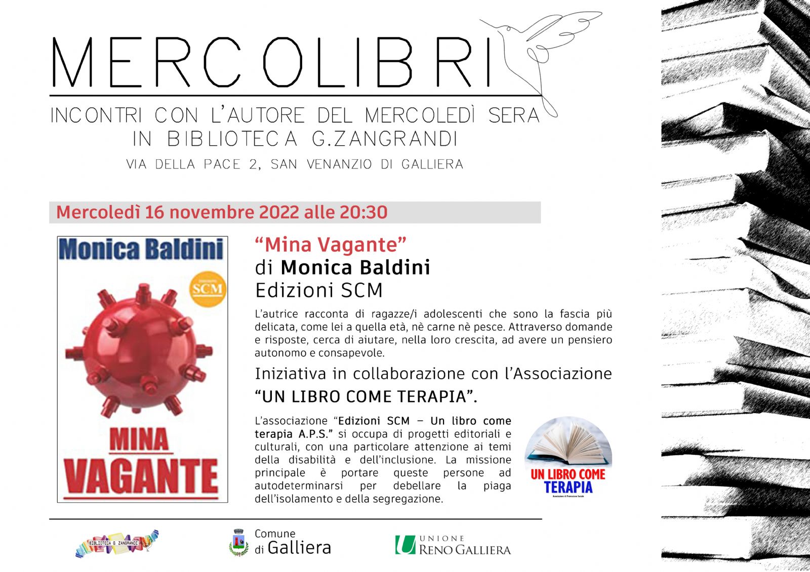 Il primo appuntamento con i Mercolibrì della Biblioteca G. Zangrandi sarà Mercoledì 16 novembre 2022 alle 20:30 con “Mina Vagante” di Monica Baldini - Edizioni SCM.