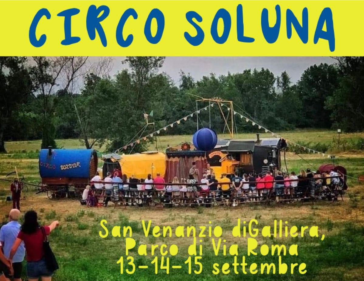 13, 14 e 15 settembre il CIRCO SOLUNA si troverà nel parco “Vittime innocenti delle mafie” di Via Roma (davanti alla palestra) a San Venanzio di Galliera per intrattenere grandi e piccini con il loro spettacolo.