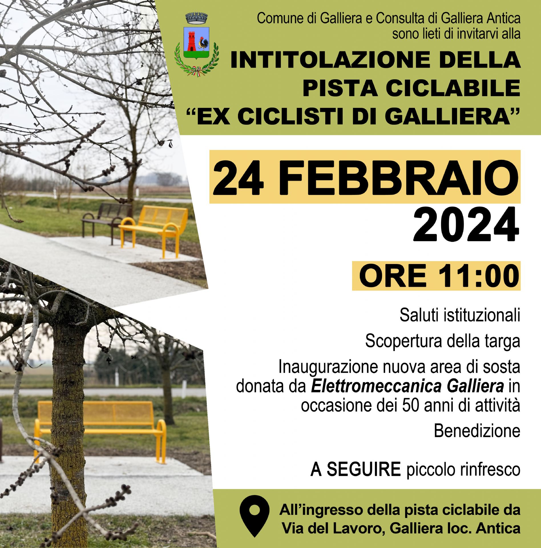 Comune di Galliera e Consulta di Galliera Antica sono lieti di invitarvi alla INTITOLAZIONE DELLA PISTA CICLABILE “EX CICLISTI DI GALLIERA”.