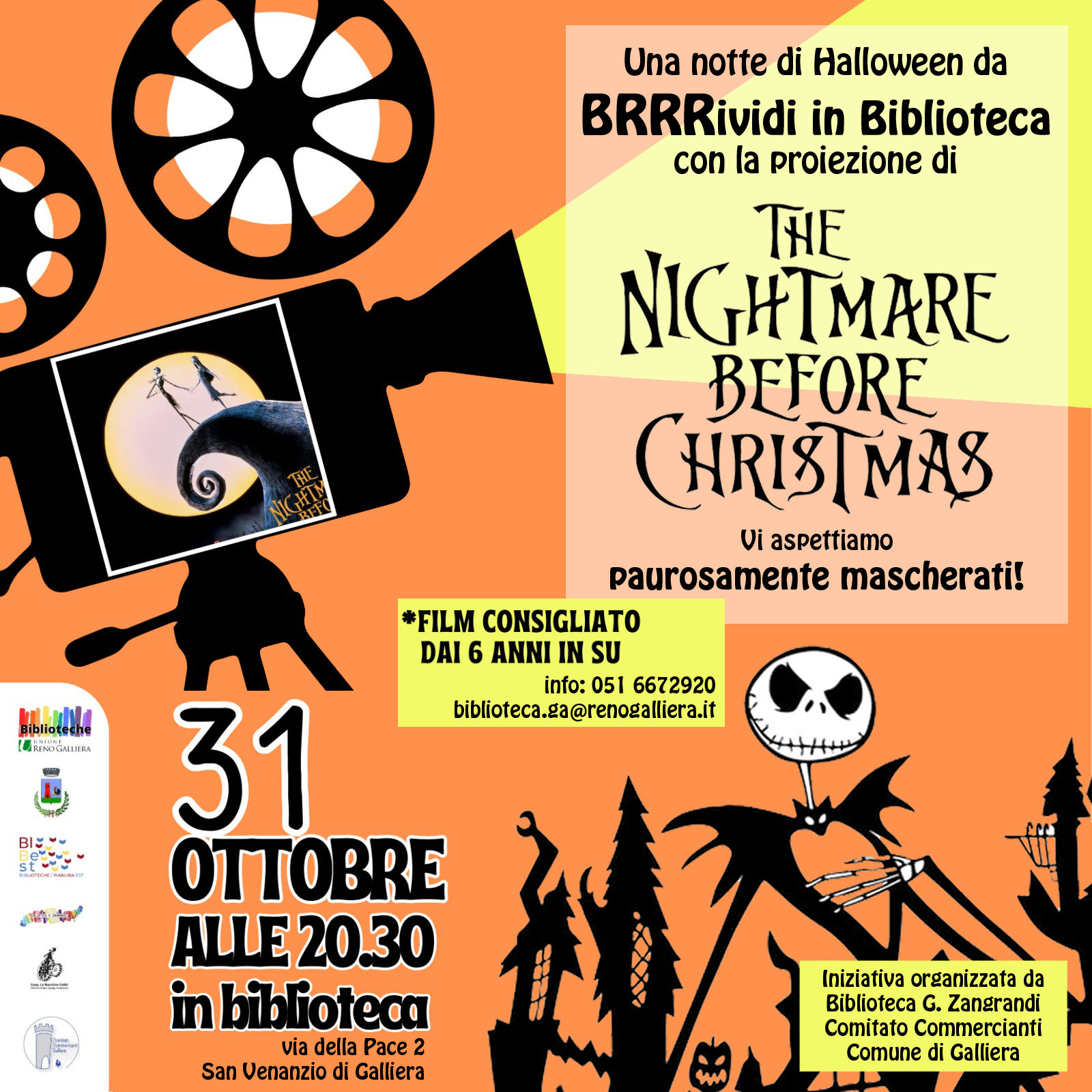 Biblioteca comunale di Galliera, Comitato Commercianti Galliera e Comune di Galliera vi aspettano con la proiezione de film d’animazione “The Nightmare before Christmas” di Tim Burton.