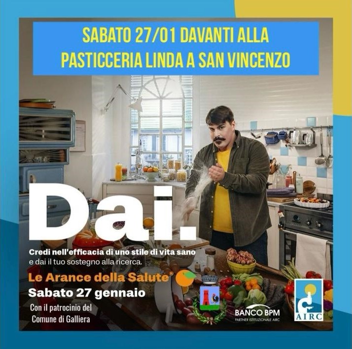 Sabato 27/01 davanti alla Pasticceria Linda troverete le Arance di AIRC - Associazione Italiana per la Ricerca sul Cancro.