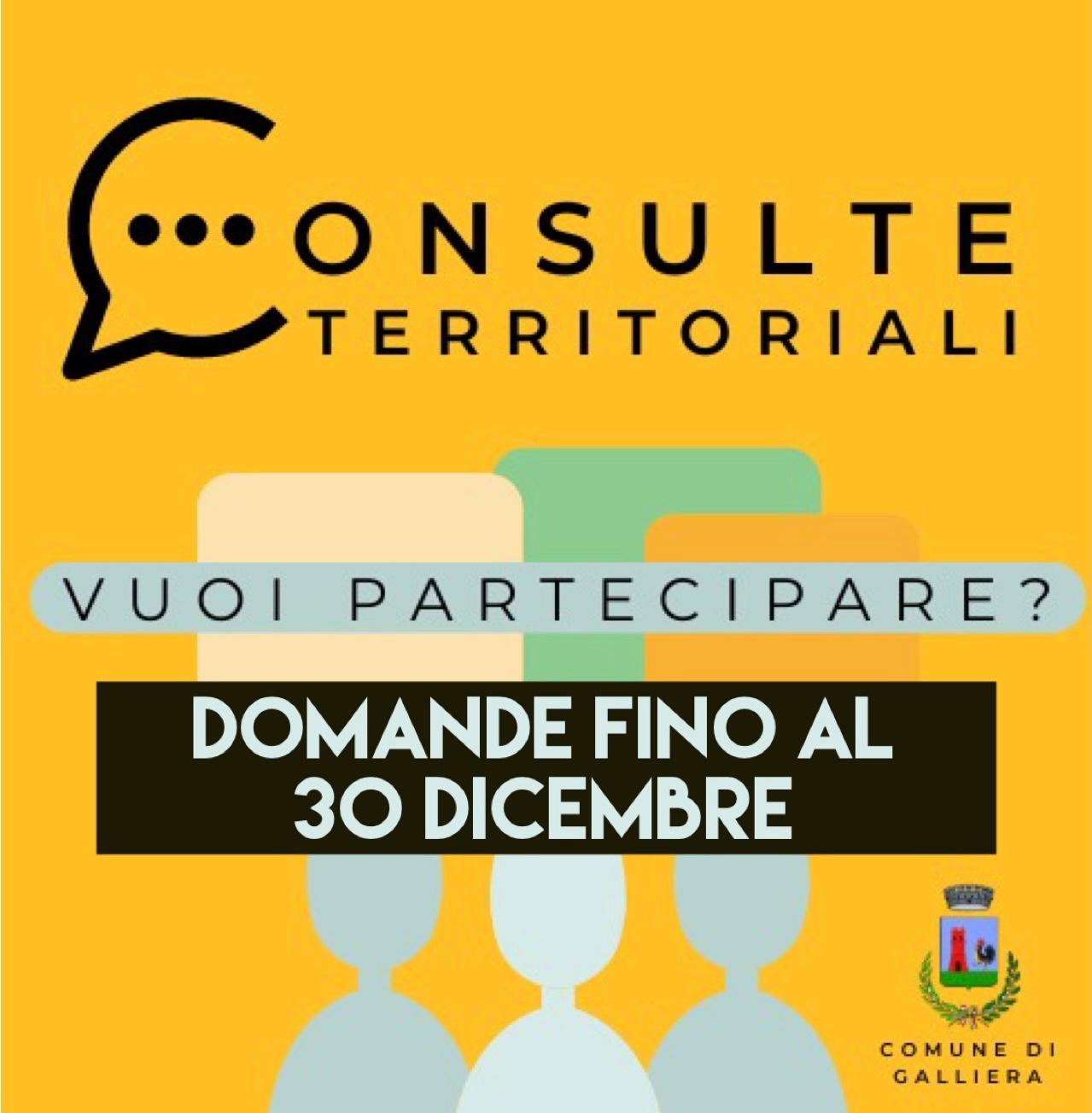 Si rende noto che con Determinazione n. 80 del 15/11/2024, il termine di scadenza per la presentazione delle domande di partecipazione al bando per candidatura componente delle Consulte Territoriali è stato prorogato al 30/12/2024