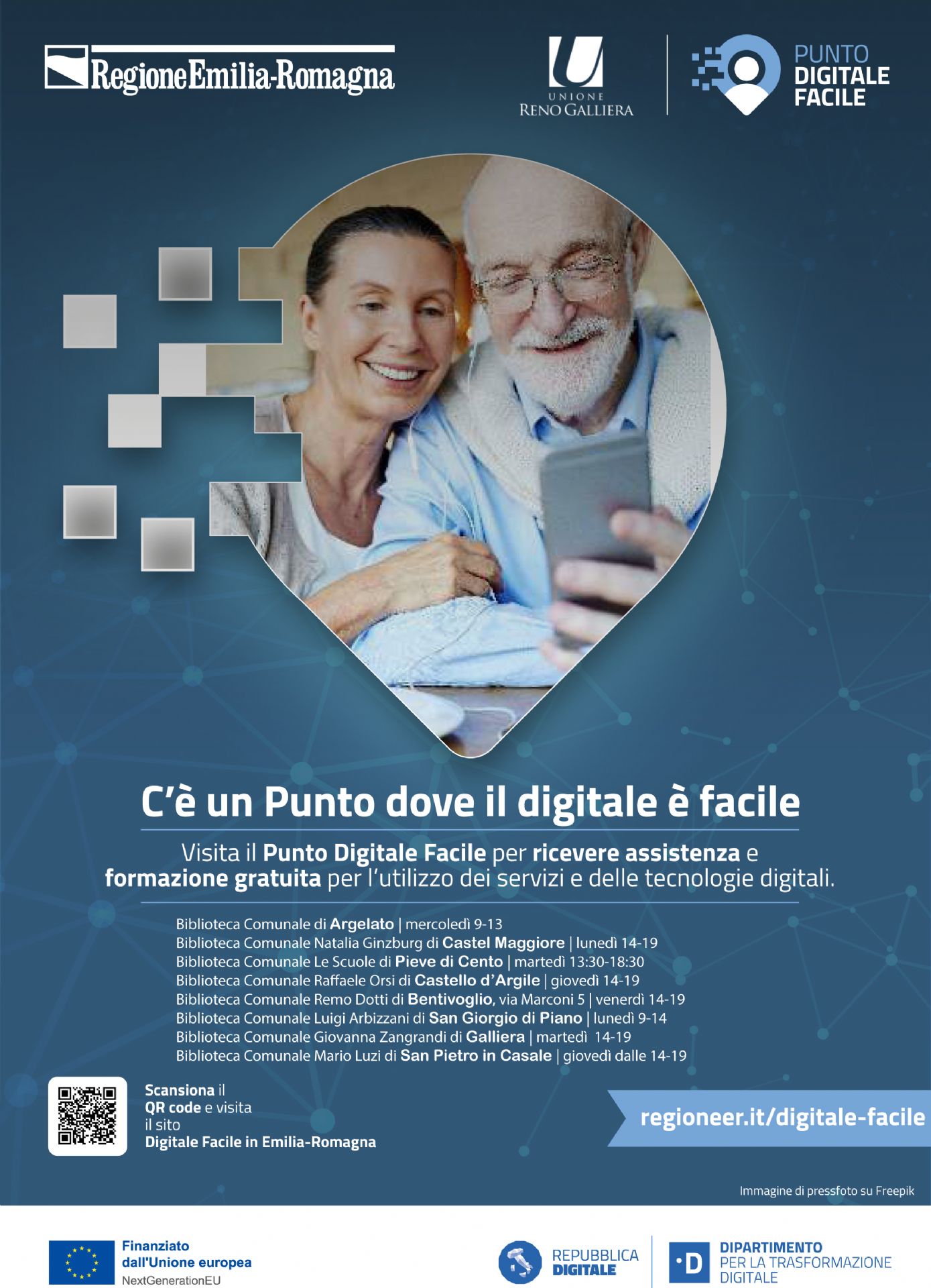 Il progetto "Digitale facile in Emilia-Romagna" è stato avviato il 27 maggio 2024 a seguito di un accordo siglato tra l'Unione Reno Galliera e la Regione Emilia-Romagna. Fino al 31 dicembre 2025, negli otto Comuni dell'Unione saranno operativi punti di facilitazione digitale dove i cittadini riceveranno assistenza e formazione gratuite per l'uso dei servizi online e delle tecnologie digitali.