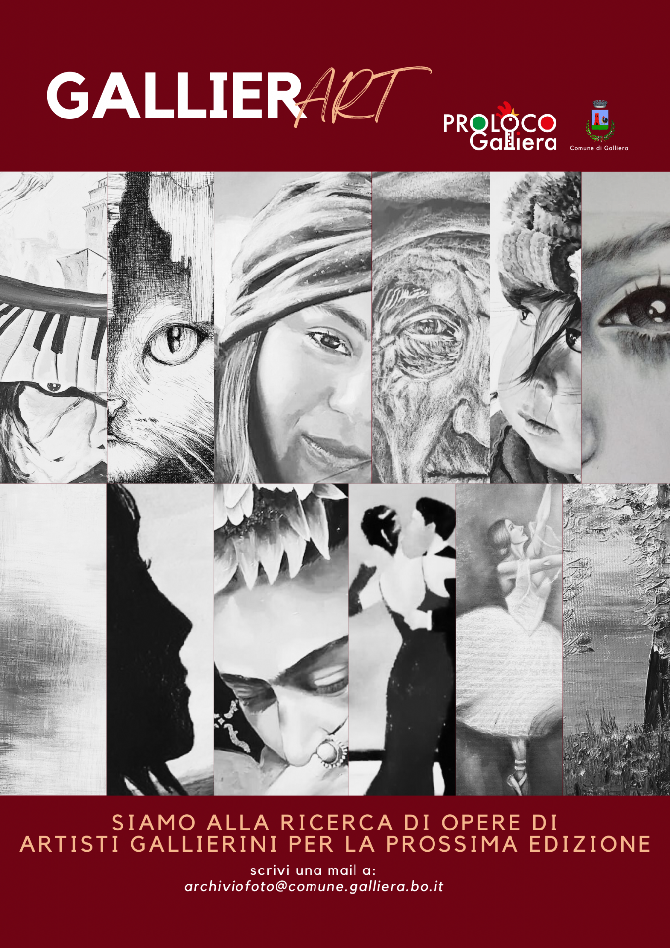 Visto il grande successo della prima edizione di G𝐚l𝐥i𝐞r𝐀R𝐓, assieme a Pro Loco Galliera siamo già alla ricerca di opere di artisti Gallierini da inserire nella prossima mostra che si terrà in occasione della tradizionale Fiera d’Agosto, 04/08 e 05/08!