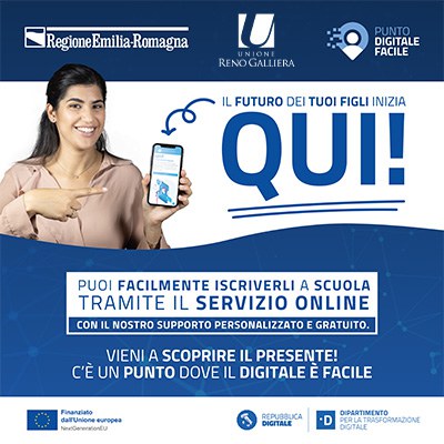 Se hai bisogno di assistenza per l’iscrizione online alle scuole per l’anno scolastico 2025/2026, puoi rivolgerti ai Punti di Facilitazione Digitale attivi negli 8 Comuni dell’Unione Reno Galliera.