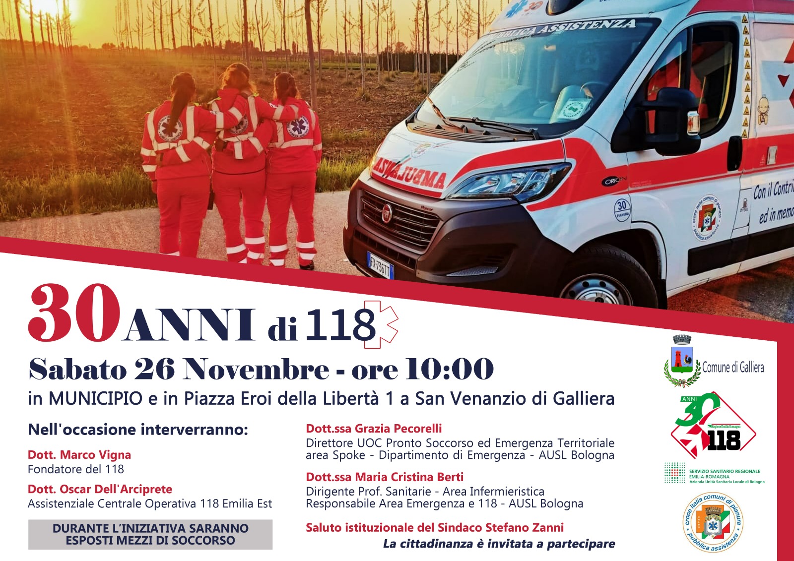 L'evento promosso dal Comune di Galliera, Croceitalia Comuni di Pianura e dall'Area Emergenza 118 dell'AUSL Bologna vedrà l'intervento di diversi esponenti del servizio sanitario, oltre all'esposizione dei mezzi utilizzati quotidianamente dal personale, anche volontario.