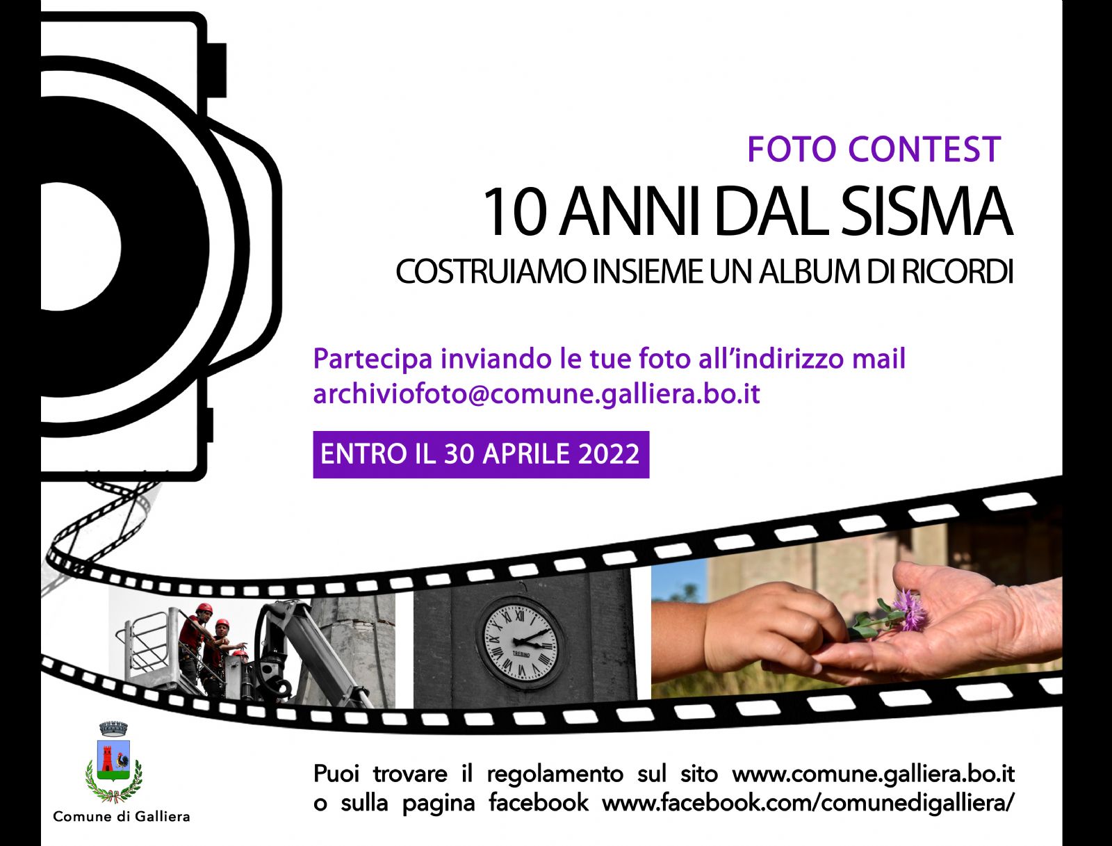 👉 Il Comune di Galliera lancia un FOTO CONTEST che invita TUTTI coloro che sono in possesso di qualche fotografia scattata a Galliera e dintorni inerente al sisma che ha colpito i nostri territori il 20 e il 29 maggio 2012 ad inviare tali immagini per costruire insieme un album di ricordi a dieci anni dal terremoto.