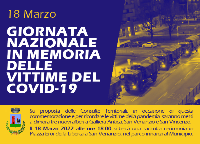 Il 18 Marzo alle ore 18:00 si terrà una raccolta cerimonia in Piazza Eroi della Libertà (innanzi al Municipio) a San Venanzio.