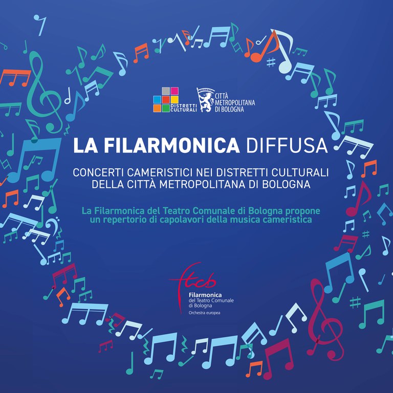 Il progetto, che prevede un concerto cameristico (dal trio al quintetto) per ciascun Distretto culturale, si propone di ‘diffondere’ la Filarmonica nel territorio bolognese, ossia fuori dai luoghi tradizionalmente deputati nel centro storico, e di far conoscere sia i capolavori della musica cameristica, da Mozart a Beethoven, da Schubert a Mendelssohn a Brahms, sia rarità di autori meno noti.
