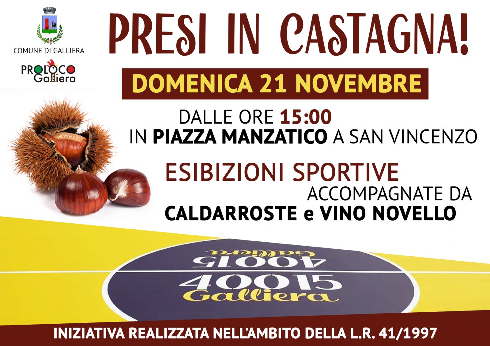 📅 Domenica 21 novembre a partire dalle 15:00 in piazza Manzatico a San Vincenzo di Galliera esibizioni sportive 🏀 accompagnate dalle tradizionali 🌰 caldarroste e 🍷 vino novello a cura di Pro Loco Galliera!