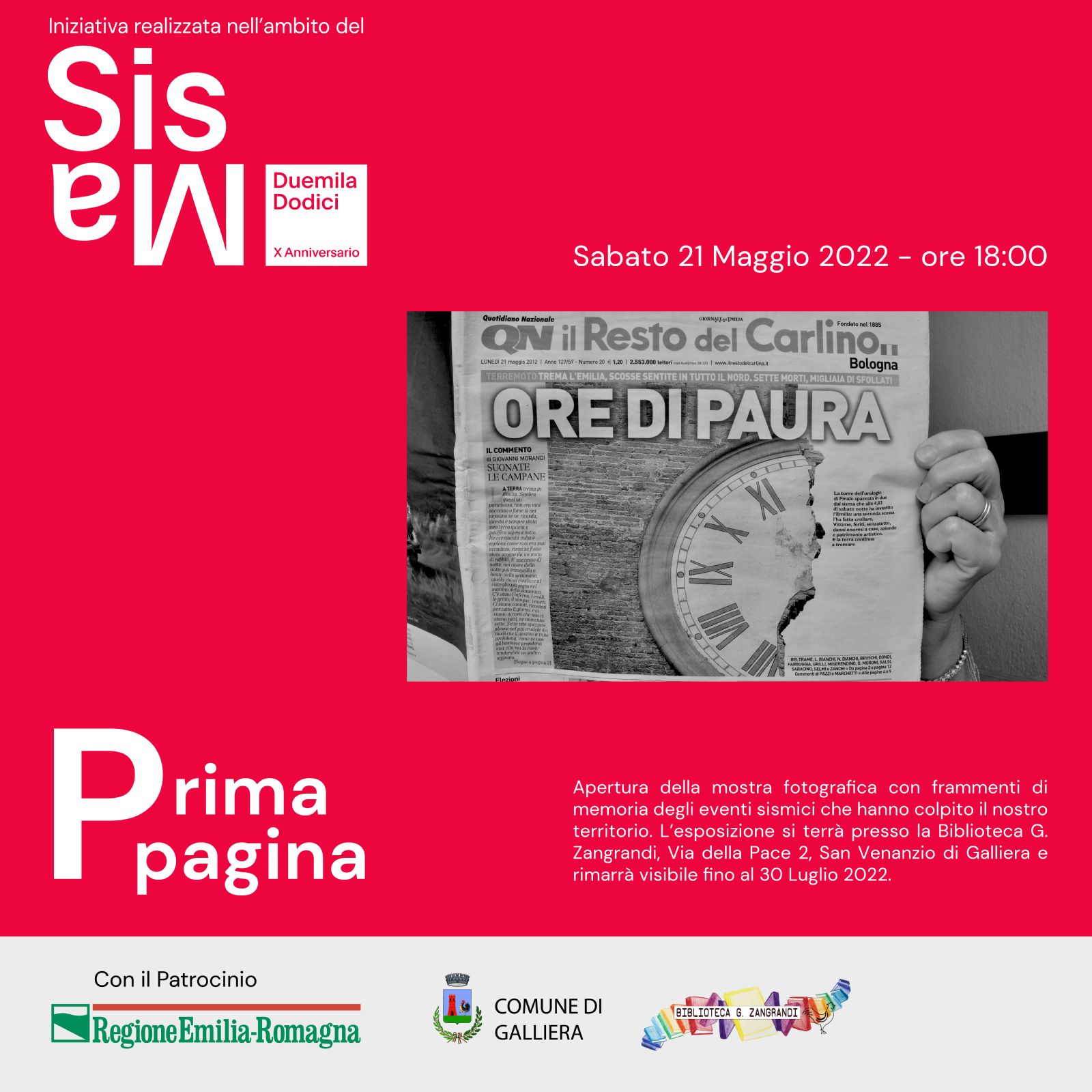 “Prima Pagina” è una mostra che raccoglie frammenti di memoria del sisma che ha colpito il nostro territorio nel 2012.