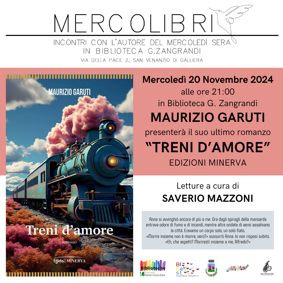 𝗠𝗲𝗿𝗰𝗼𝗹𝗲𝗱𝗶̀ 𝟮𝟬 𝗡𝗼𝘃𝗲𝗺𝗯𝗿𝗲 𝟮𝟬𝟮𝟰 𝗮𝗹𝗹𝗲 𝗼𝗿𝗲 𝟮𝟭:𝟬𝟬 in Biblioteca G. Zangrandi 𝗠𝗔𝗨𝗥𝗜𝗭𝗜𝗢 𝗚𝗔𝗥𝗨𝗧𝗜 presenterà il suo ultimo romanzo "𝙏𝙍𝙀𝙉𝙄 𝘿'𝘼𝙈𝙊𝙍𝙀" -EDIZIONI MINERVA con letture a cura di SAVERIO MAZZONI.