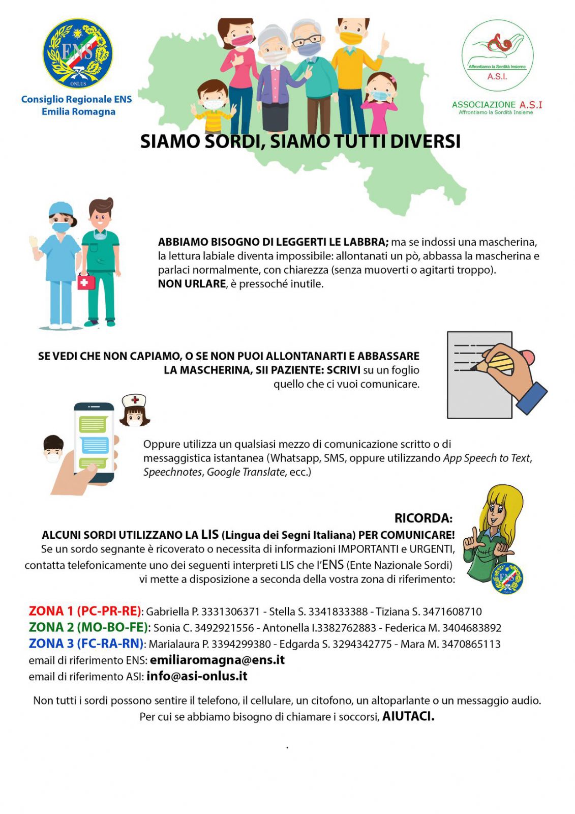 L’utilizzo della mascherina impedisce la lettura labiale, la visione del viso e delle espressioni, con conseguente mancanza di comprensione tra interlocutore sordo e interlocutore udente. E' opportuno comprendere che ogni persona sorda è diversa dall'altra e le persone sorde comunicano con strumenti diversi: il labiale, la LIS, le espressioni, il movimento corporeo, la sottotitolazione, la scrittura.