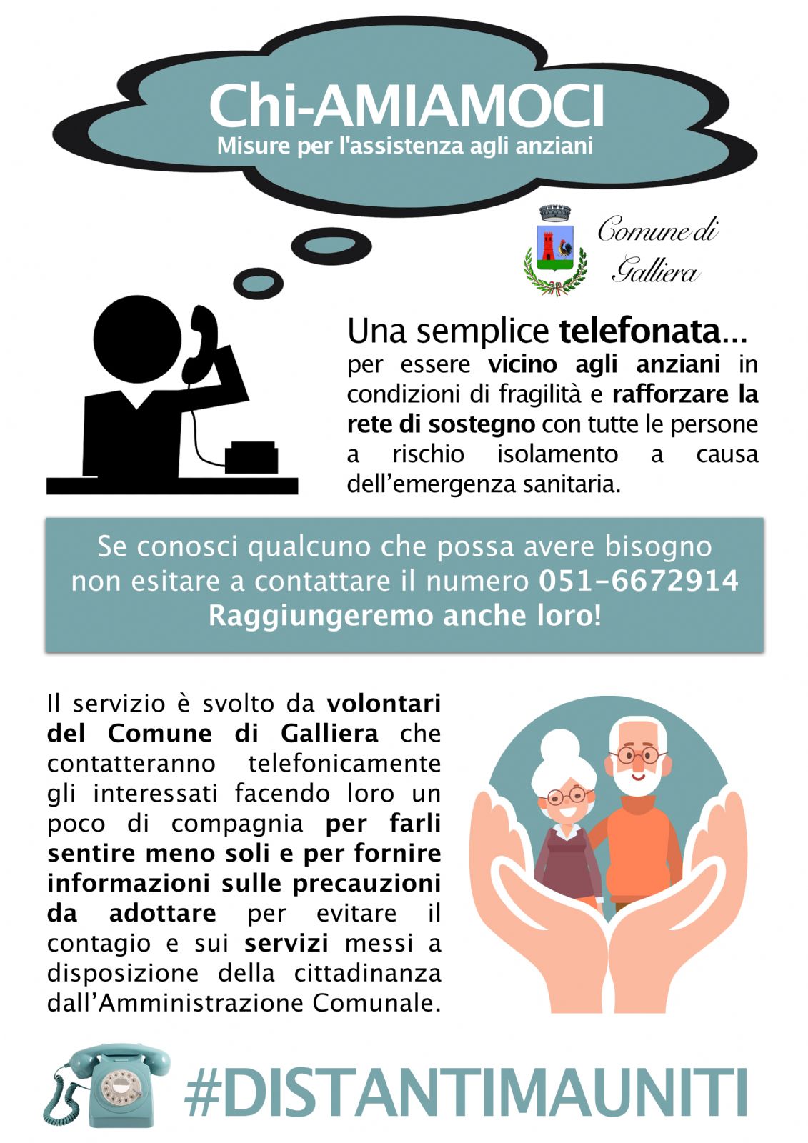 Grazie alla rete di volontariato della comunità di Galliera, le persone a rischio isolamento e i più anziani, saranno raggiunti da una telefonata, così che non si sentano abbandonati.