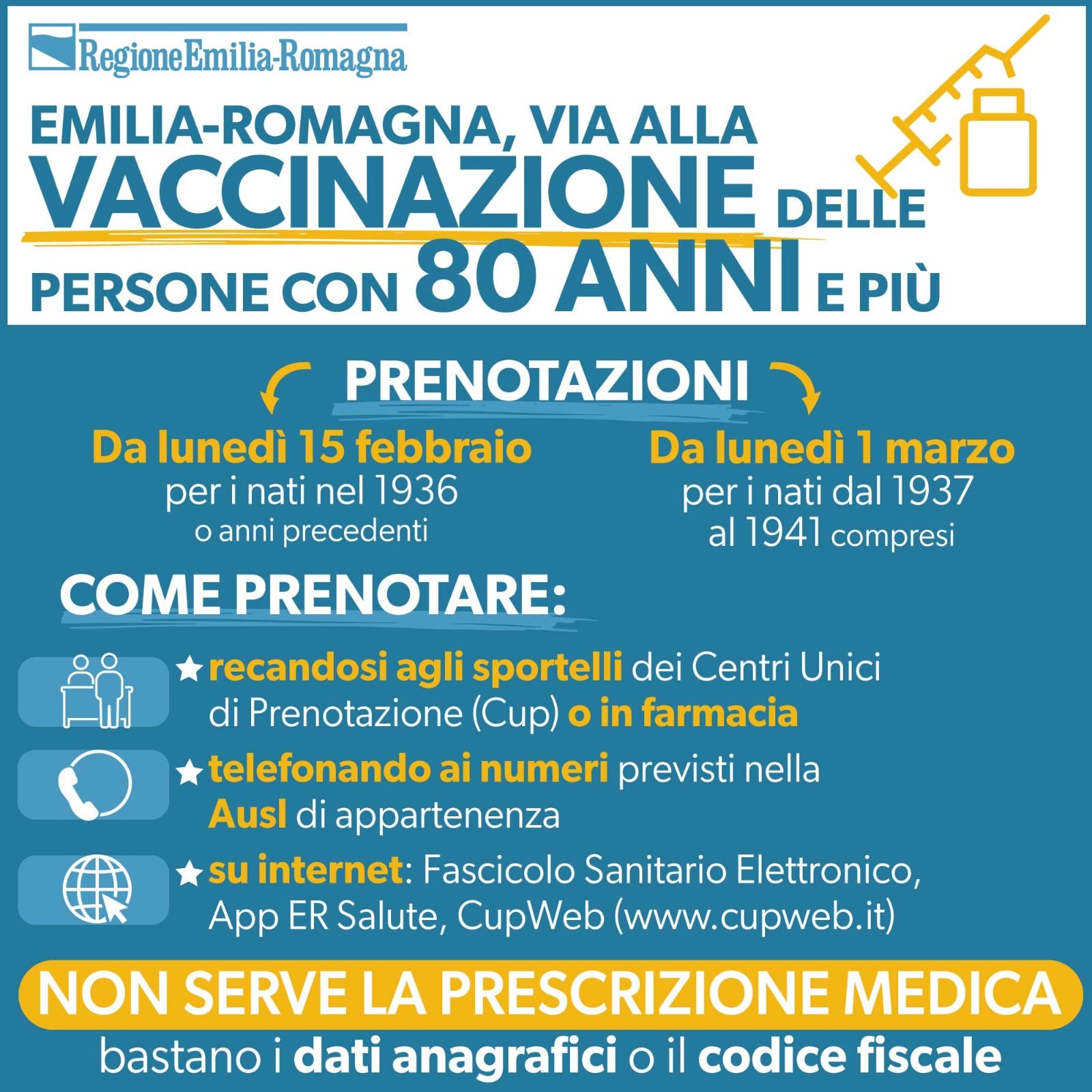 Dal 15 febbraio possono prenotarsi gli ultra 85enni, e dal 1 marzo gli ultra 80enni.