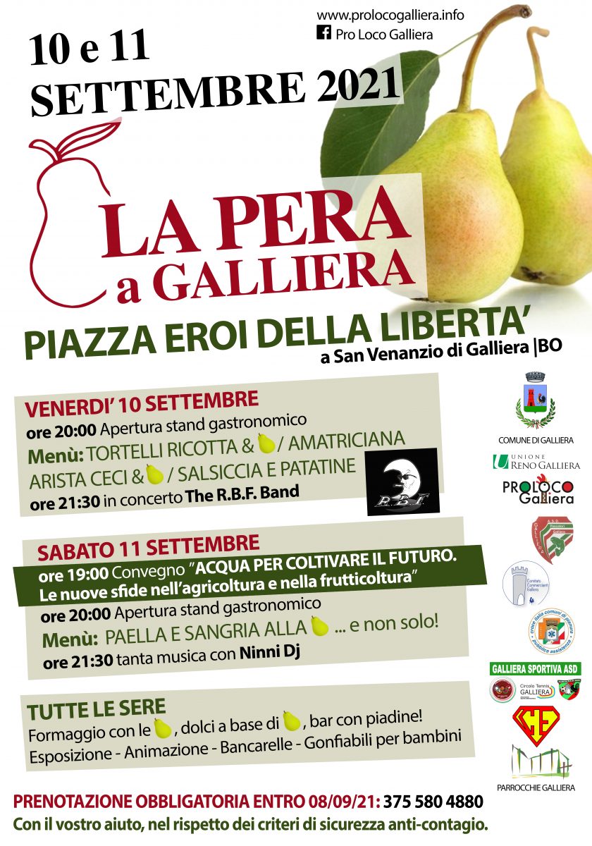 Dopo il grande successo dell’edizione 2019, si terrà venerdì 10 e sabato 11 settembre 2021 l’iniziativa “LA PERA A GALLIERA”