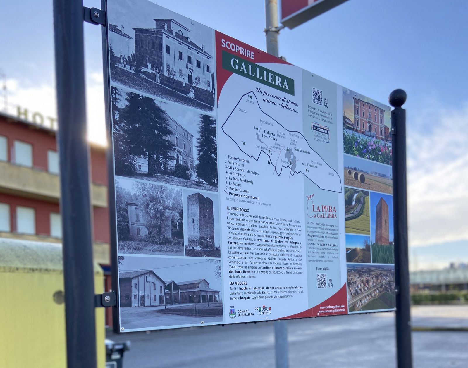 Un percorso di storia, natura e bellezza… Un percorso che oggi si può fare anche attraverso i "QR Code" posti sui cartelli recentemente installati nei luoghi di interesse simbolo del nostro territorio, dalla TORRE MEDIEVALE di Galliera a VILLA BONORA, oggi sede del Municipio, dalla BISANA alla TOMBETTA.