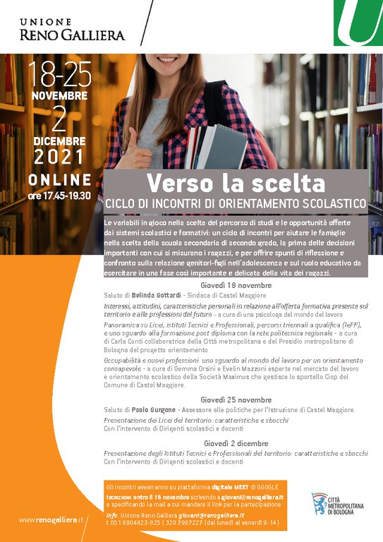 Iscrizioni: entro il 16 novembre scrivendo a giovani@renogalliera.it e specificando la mail cui mandare il link per la partecipazione
