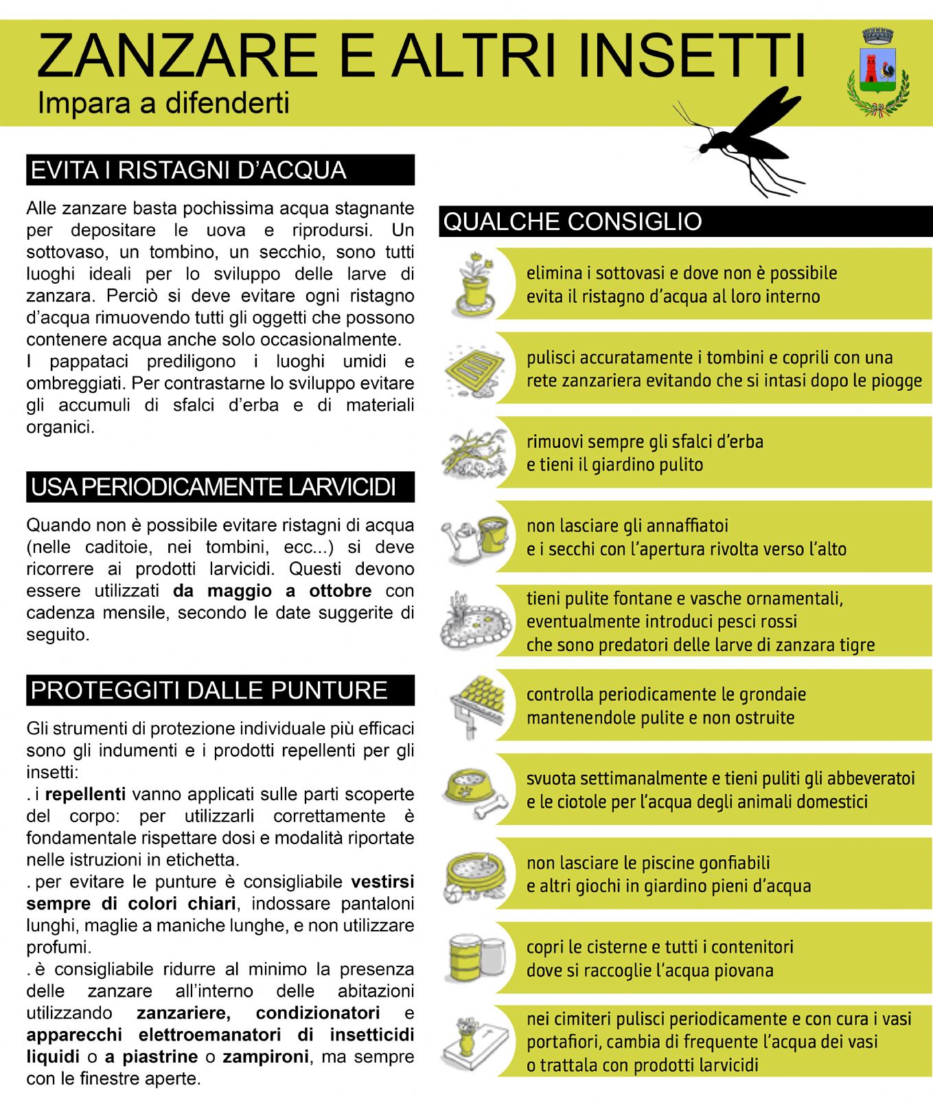Come lo scorso anno ai cittadini chiediamo di effettuare gli interventi con larvicidi nelle proprie aree private e di mettere in pratica alcune semplici norme di comportamento per evitare il diffondersi del fastidioso insetto.