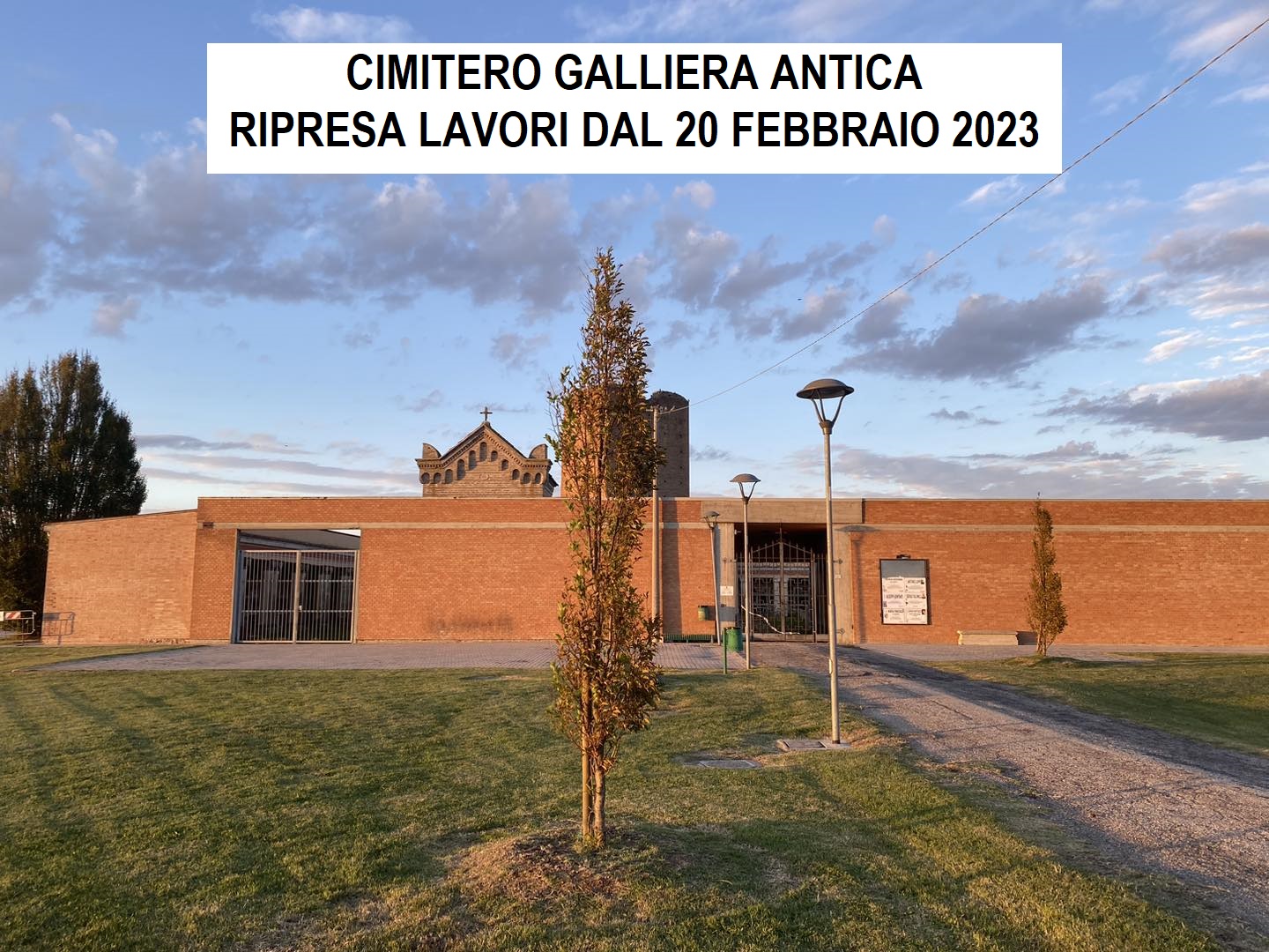 Si comunica che a partire dal 20 Febbraio 2023 riprenderanno i lavori di ripristino delle coperture poste sugli edifici all’interno del cimitero di Galliera Località Antica.