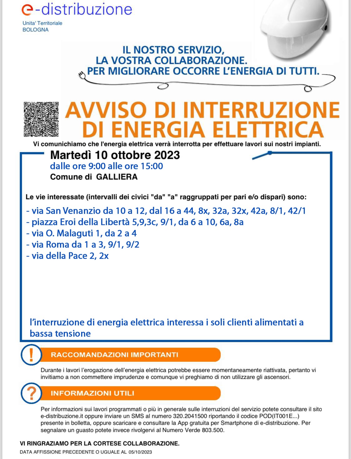 E-distribuzione ci comunica che, causa lavori alla rete elettrica, nella giornata di