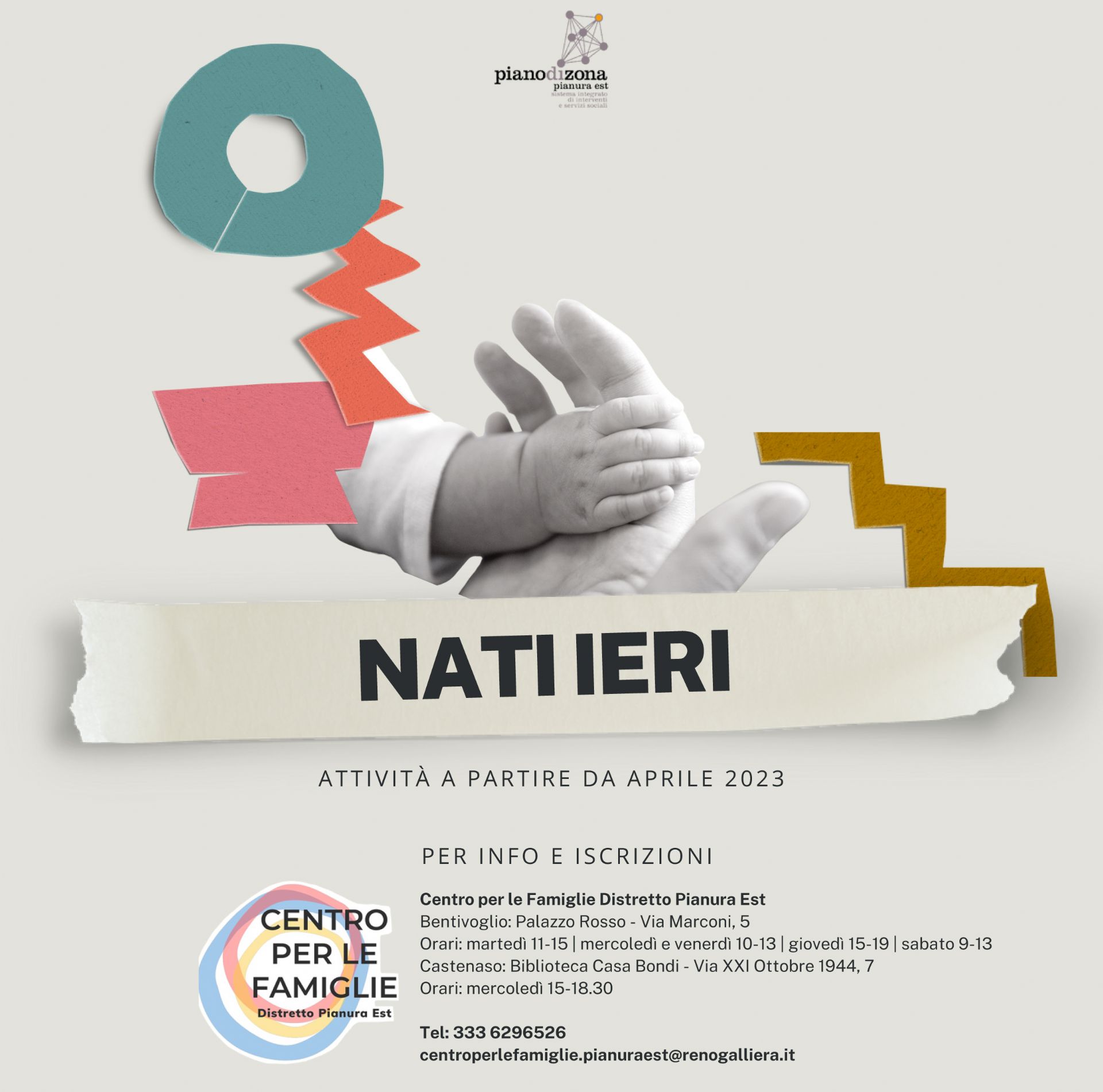 Segnaliamo le iniziative promosse nell'ambito del Progetto distrettuale NATI IERI, realizzato in rete anche con il Centro per le famiglie. Il progetto è rivolto a famiglie in attesa e con figli/e da 0 a 6 anni, con iniziative a supporto della genitorialità attraverso percorsi di sostegno ed accompagnamento, servizio di assistenza ostetrica domiciliare pre/post parto, incontri tematici e gruppi, laboratori esperienziali genitori-figli/e, finalizzati all'ascolto e alla socializzazione delle famiglie.