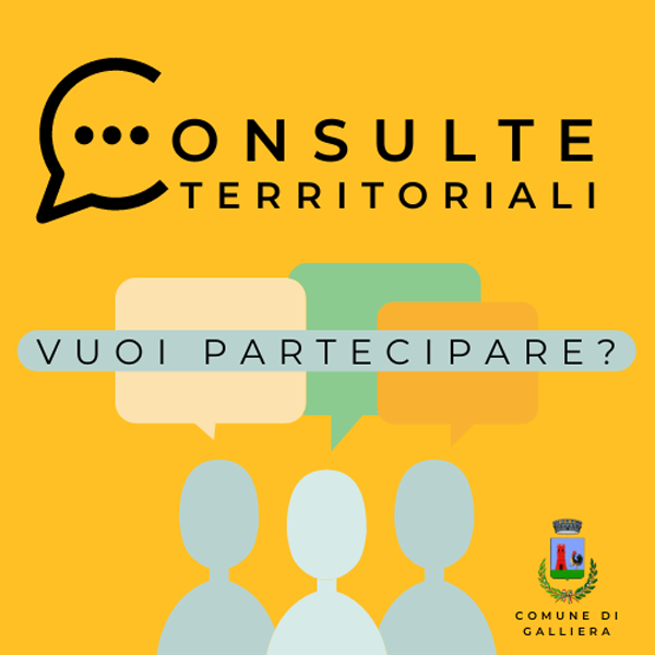 Al fine di favorire la partecipazione popolare alla vita politico amministrativa del territorio e consentire alla comunità tutta di partecipare attivamente alle scelte politiche dell’Amministrazione comunale, in attuazione del “Regolamento delle Consulte Territoriali ” approvato dal Consiglio Comunale di Galliera con Deliberazione n. 50 del 2 ottobre 2019,
