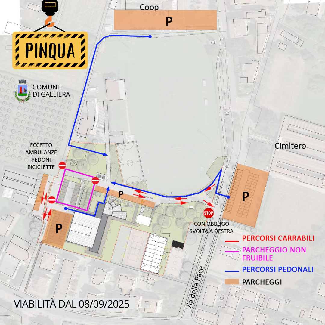 - per chi accederà al centro sportivo da Via della Pace sarà consentita l'uscita esclusivamente da Via della Pace con obbligo di svolta a destra in direzione Via Vittorio Veneto