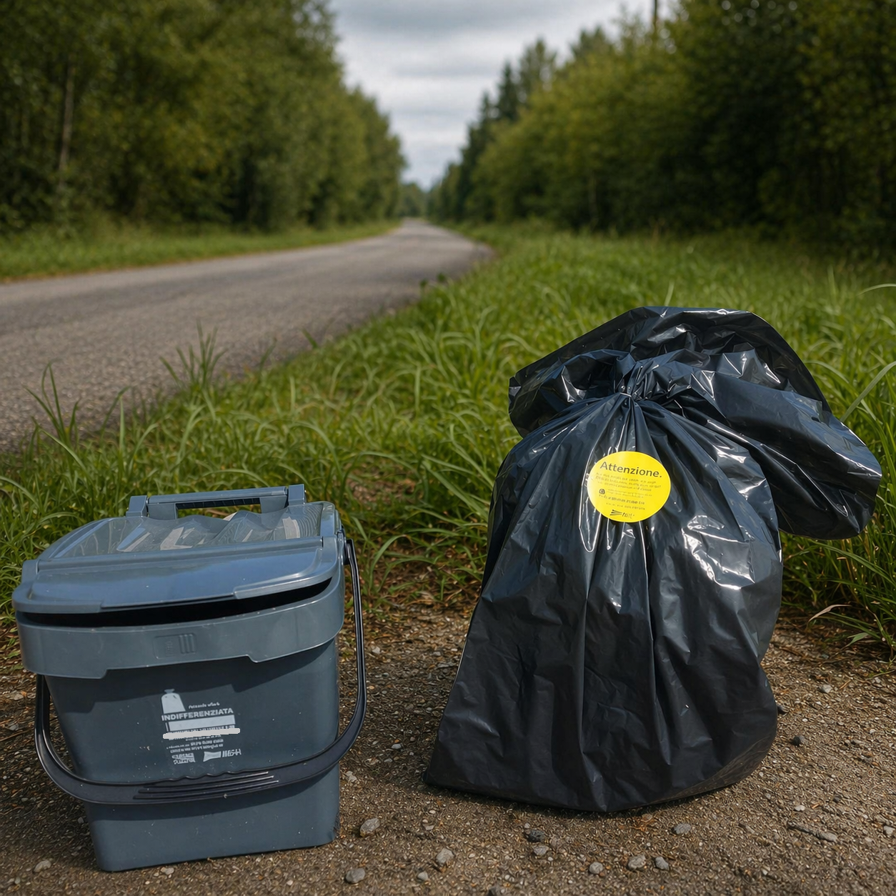 - Rifiuto indifferenziato: raccolto esclusivamente tramite bidoncino con coperchio grigio associato all’utenza (non sono ammessi sacchi sfusi o contenitori diversi)