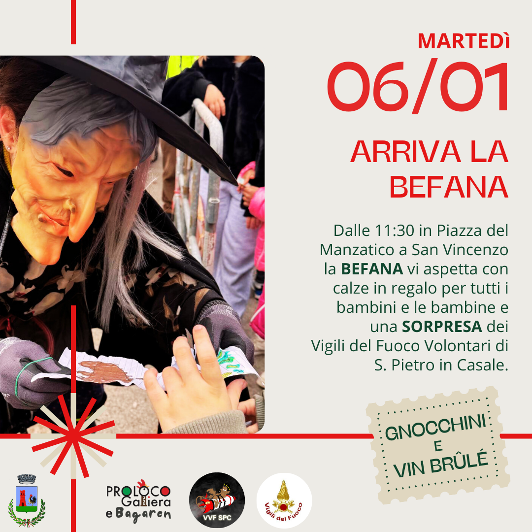Martedì 6 gennaio 2025, alle 11:30, la Befana farà la sua prima apparizione in Piazza del Manzatico a San Vincenzo… e arriverà carica di sorprese!