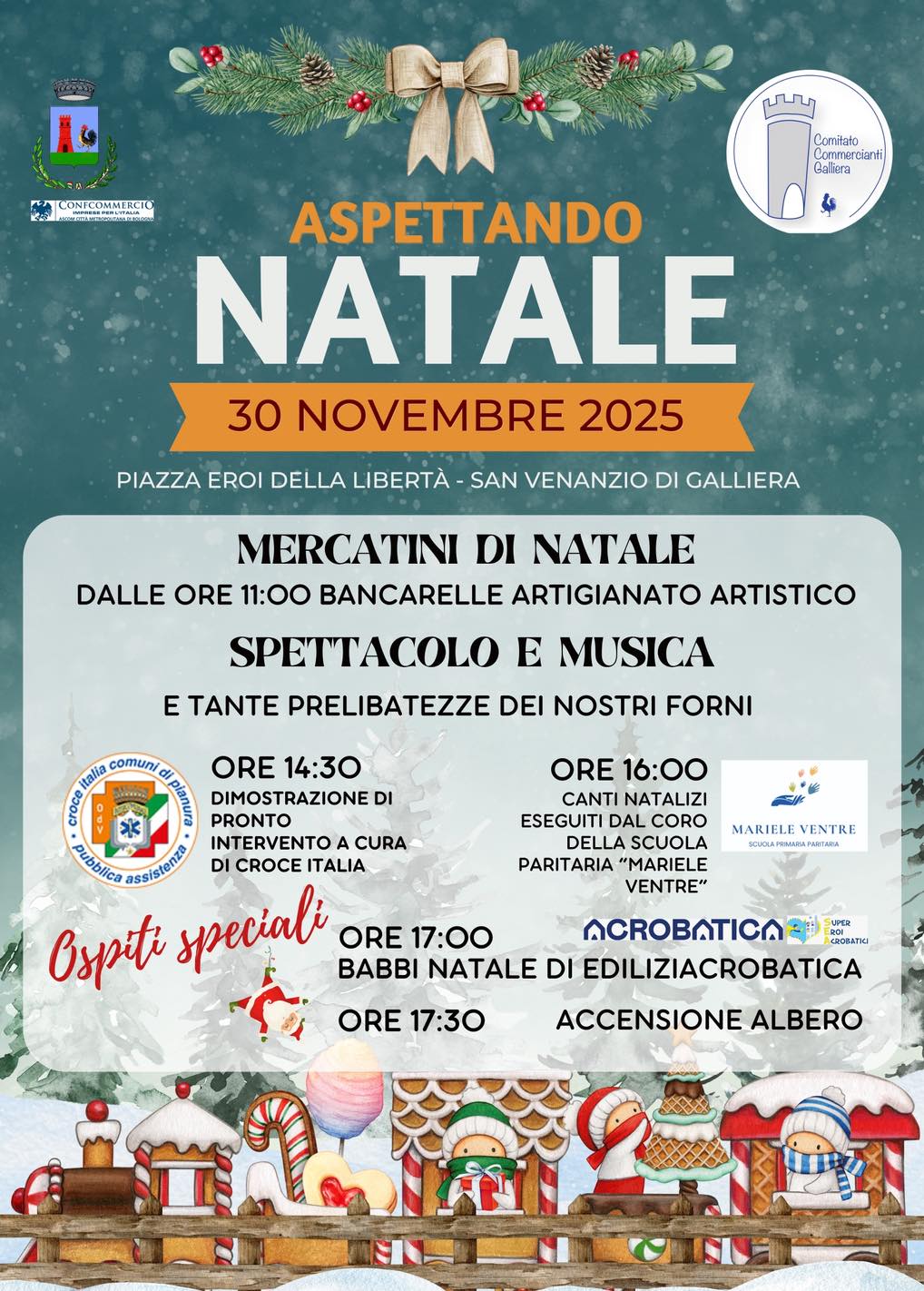 - ore 17:00 gran finale con Babbi Natale di EdiliziAcrobatica e l'accensione dell'Albero