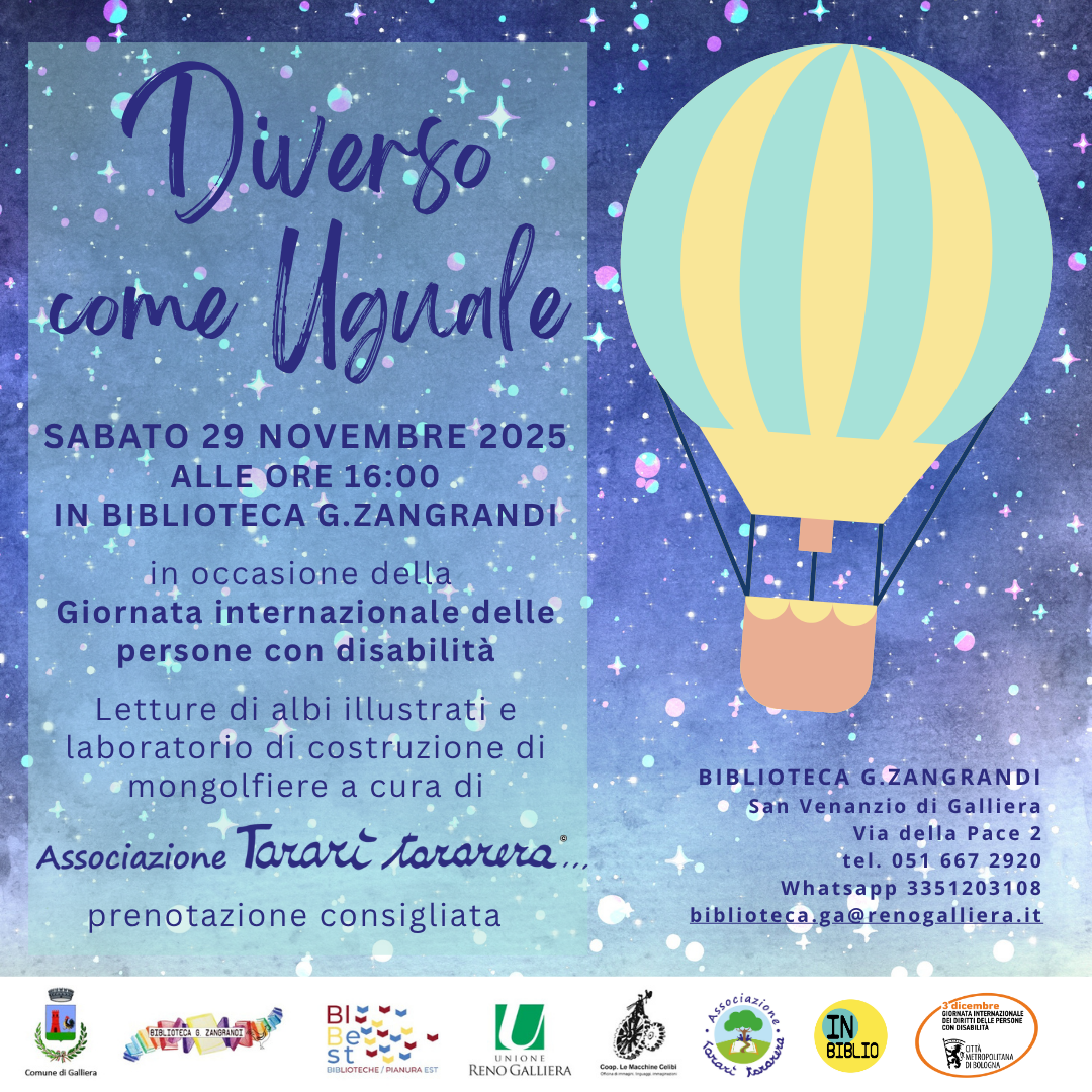 SABATO 29 NOVEMBRE 2025 ALLE 16:00 presso la Biblioteca comunale di Galliera, in occasione della Giornata internazionale delle persone con disabilità, una iniziativa a cura di Associazione Tararì Tararera.