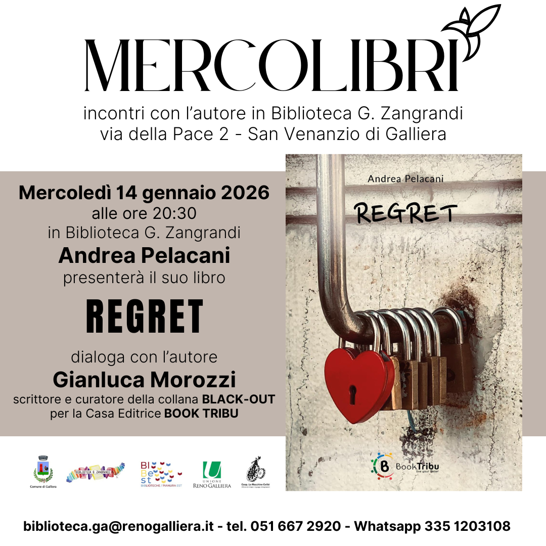Mercoledì 14 gennaio 2026 alle ore 20:30 Andrea Pelacani e presenterà il suo libro “Regret”.