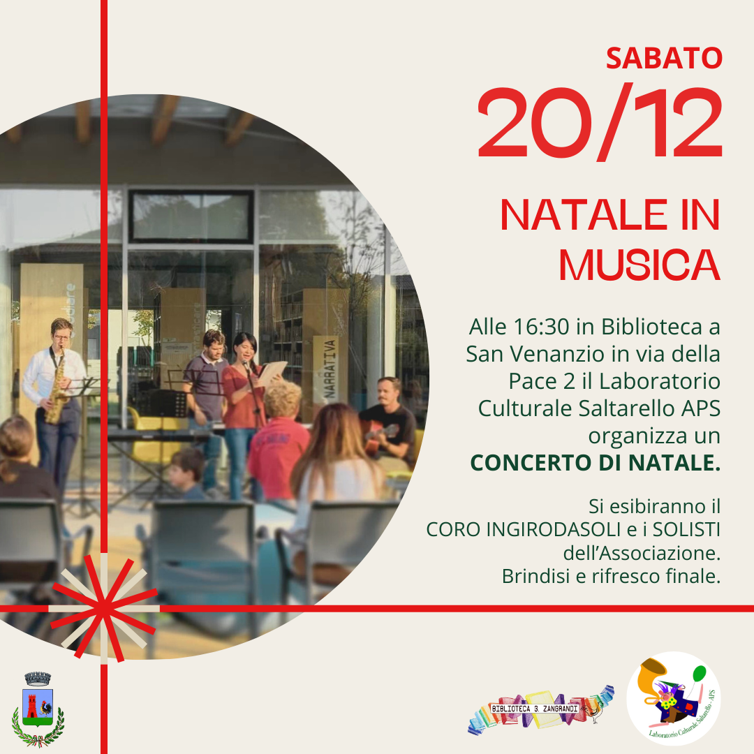 Sabato 20 dicembre alle 16:30 in Biblioteca a San Venanzio - in via della Pace 2 il Laboratorio Culturale Saltarello APS organizza un CONCERTO DI NATALE.